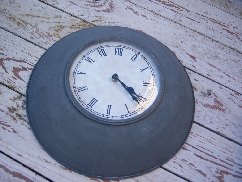 Wanduhr aus Zink grau mit Glas rund 34,95