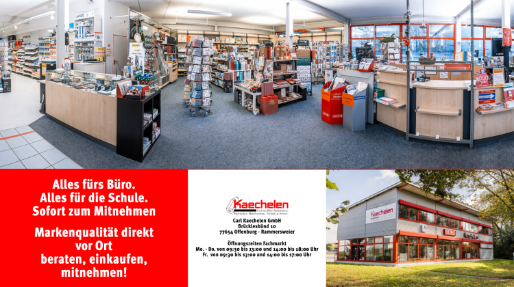 In unserem Standort in Offenburg-Rammersweier profitieren Sie von einem eigenen Lager sowie einem umfassend ausgestatteten Fachmarkt für Bürobedarf.