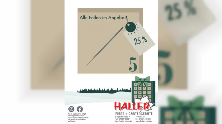 Alle Feilen im Angebot. Genau für die Vorbereitung auf die Motorsägen-Saison. Heute 25 Prozent Rabatt bei Haller Forst und Gartengeräte. Solange verfügbar.