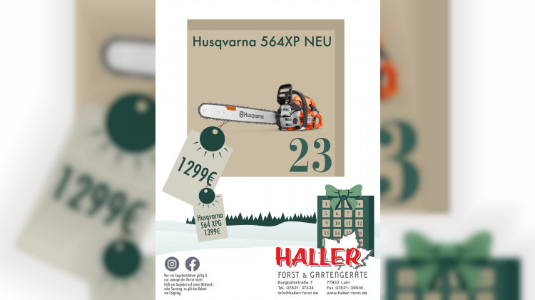 Die neue Husqvarna 564XP bringt Leistung für anspruchsvolle Waldarbeit. Stark, zuverlässig und modern. Heute für 1299 Euro. Die 564 XPG für 1399 Euro. Bei Haller Forst und Gartengeräte. Solange verfügbar.